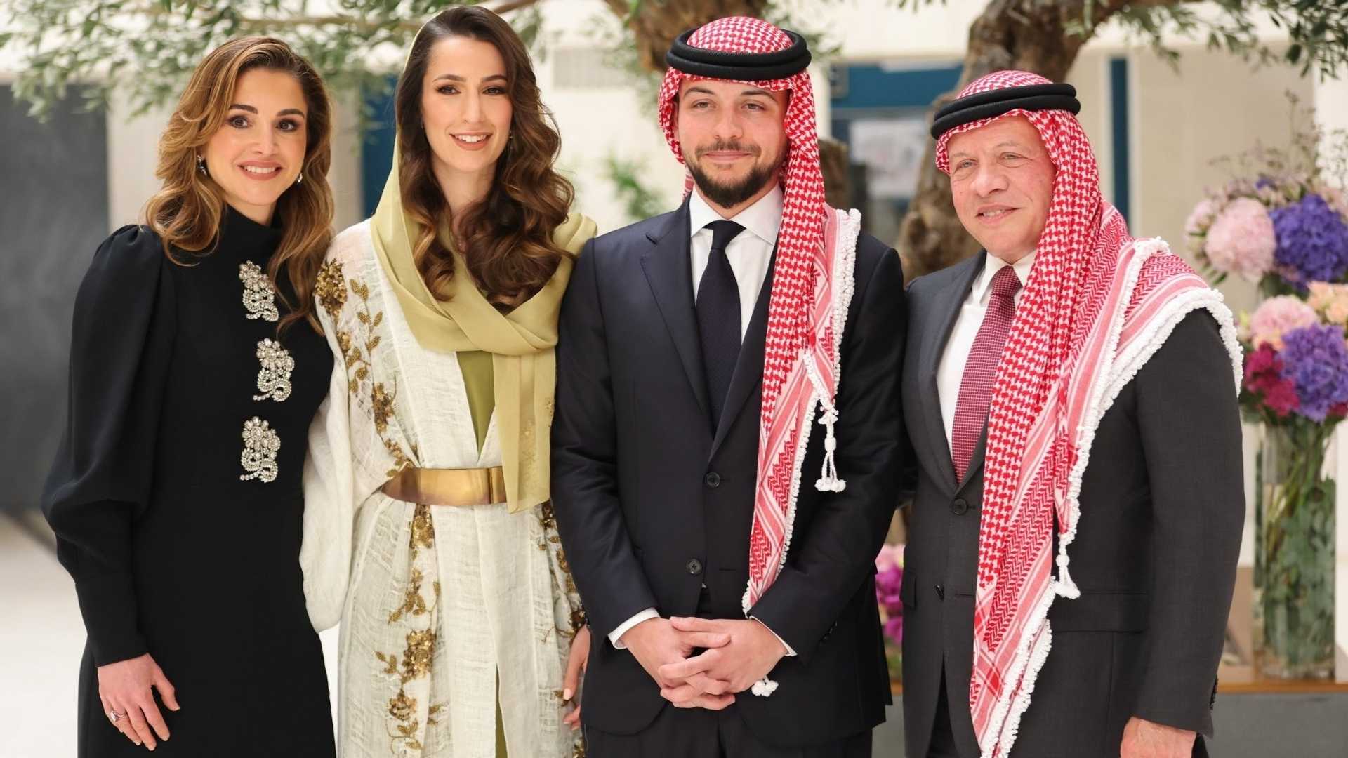 والدة ولي العهد الملكة رانيا، وبعدما نشرت مساء الأربعاء سلسلة صور على حسابها الشخصي على موقع تبادل الصور انستغرام، توثّق الحدث العائلي السعيد، عادت اليوم ونشرت صورة تجمعها بالخطيبةالجميلة وكتبت تعليقاُ أقل ما يقال عنه انّه مؤثر ونابع من قلب أمّ لا تتمنى سوى السعادة لأولادها: "كل الهلا برجوةِ الغالي الحسين، وجودك بينا بهجة وسرور. كان عندي بنتين صاروا ثلاث، فرحتنا فيكم ما بتنوصف."